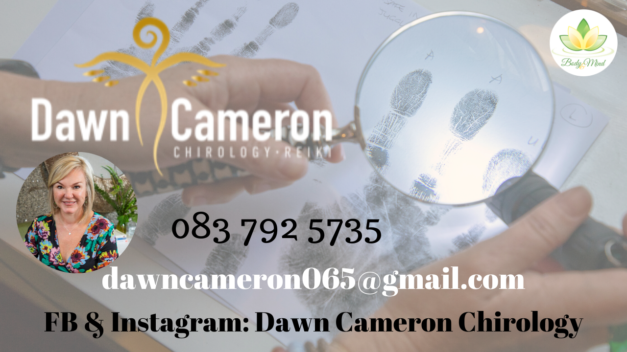 Dawn Cameron is a professional chirologist who uses an academic discipline and behavioural psychology to analysis the gifts, talents and potential etched in your hands. She will decode and discuss your strengths and opportunities with your relationships, career and physical well-being.